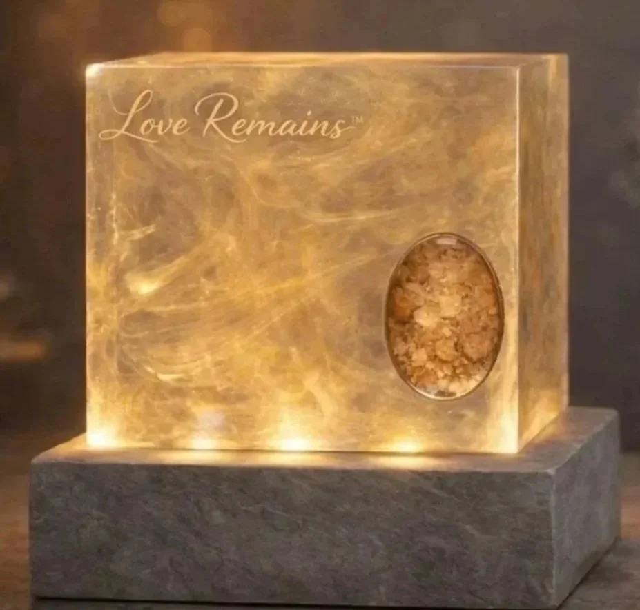 Within The Essence Collection, ashes may be placed, layered, or gently held within form — sometimes contained, sometimes suspended — but they are never constrained or directed. They are folded gently into light and allowed to drift, settle, and rest where they choose. Imperfection is not corrected. Movement is not restrained. What emerges is not symbolic in a literal way — it is experiential, atmospheric, and deeply human.